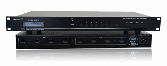11、 HDMI矩阵切换器是专门为计算机显示信号以及高分辨率HDMI图像信号的显示切换而设计的高性能智能矩阵开关设备,用于将各路电脑信号输出通道中的任一通道上,该系列产品广泛用于大屏幕投影显示工程、大屏拼接、电化教学、指挥控制中心、多媒体会议室等场合;