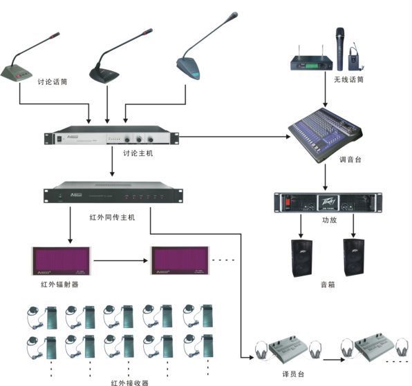 发射同传主机,发射单元,接收单元,译员机