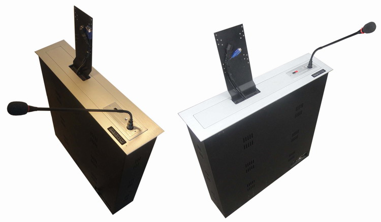 本产品主要主要用于大型会议室,学术报告厅,展厅内。当开会时,需要使用显示器时,隐藏在会议桌内部的升降机把显示器从会议桌下面升到桌面、当不使用显示器时,升降机自动下降,显示器隐藏在会议桌内,起到防尘,防盗,保持桌面平整美观。
