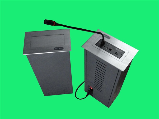 本产品是特殊定做产品,嵌在会议台上,产品体积小,所占空间小,外形美观大方.操作方便,运行平稳可靠,设有自动门装置,可根据需要,单独、群组或统一升起。广泛应用于视频会议系统、电视会议系统、金融分析系统等场所。是现代高级视频会议系统中采用的理想设备。