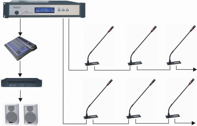 系统主机分3路话筒单元连接口,根据会议规摸话筒数量可由1-120个单元组成,可增加扩展
