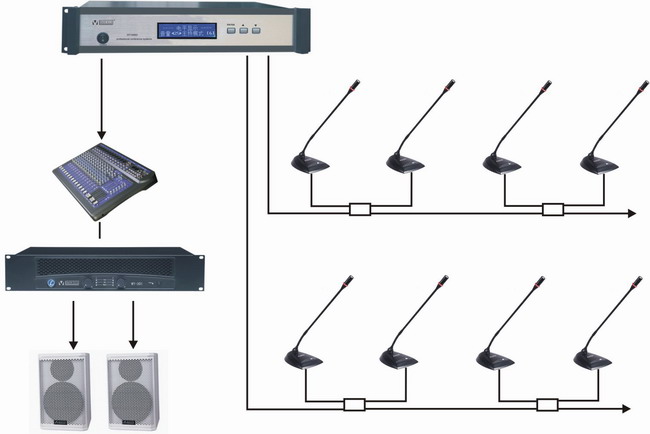 有效的反馈抑制功能。系统内嵌反馈抑制电路,结合数字均衡电路,可大幅提升会场声压