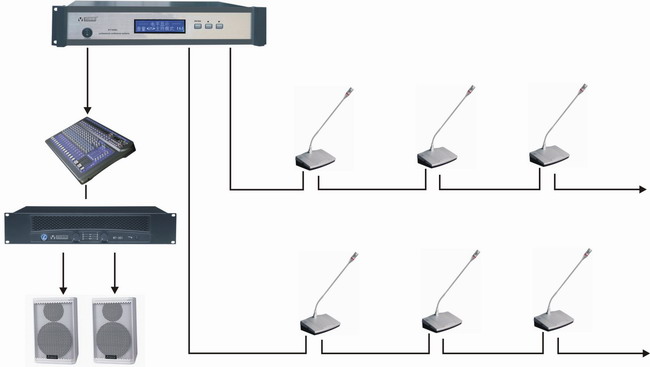 主席发言模式:只允许主席话筒发言,所有代表话筒都不能打开。