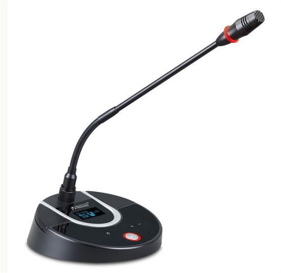 配备可插拔式鹅颈话筒带红色发言指示光环;