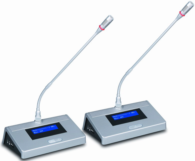 申请发言模式:与会发言单元按底座上的按钮来申请发言,由会议主席或管理员通过管理软件的界面打开其相应的发言单元。申请人再按一下按钮即可取消自己的申请