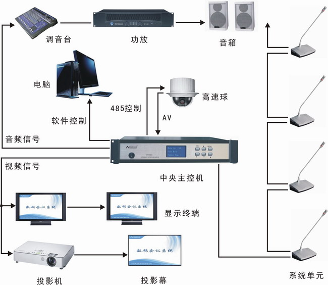 系统主机最多可连接90台会议单元,添加扩展模块最多可连接2000台会议单元