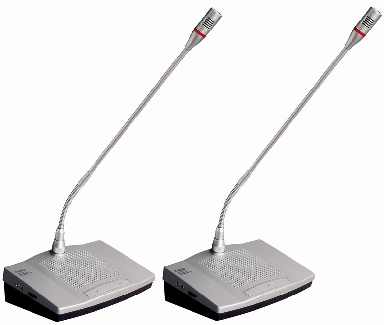 旋钮式可插拔高指向性话筒,并带有发言环形指示灯(红色)