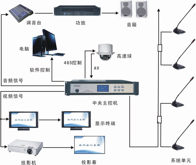 系统主机最多可连接120台会议单元,添加扩展模块最多可连接2000台会议单元