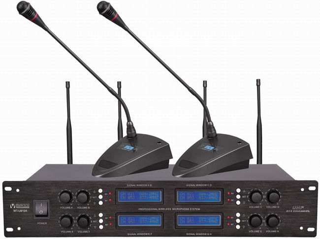 使用UHF 740-790MHz频段,采用锁相环频率稳定系统,具有200个可选频道.