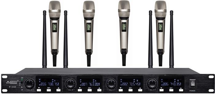 使用UHF 600-840MHz频段,采用锁相环频率稳定系统,具有4*144CH可选频道.